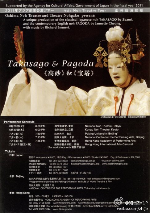 七月二日和三日在北京大学的工作坊是免费开放的。二日上午十点是能剧面具制作展示,三日下午两点是能剧表演工作坊。